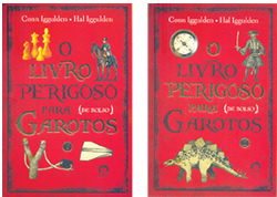 Quantos outros livros podem ensinar a construir sua própria casa na árvore, jogar pôquer ou escrever com tinta invisível? 'O livro perigoso para garotos', de Conn e Hal Iggulden, resgata brincadeiras antigas, truques, jogos, revela curiosidades sobre o sistema solar, batalhas famosas e histórias de personagens que são exemplos de coragem e bravura. Uma mistura de almanaque, enciclopédia e manual de sobrevivência para meninos, é o primeiro livro de Conn Iggulden escrito em parceria com seu irmão, Hal Iggulden. A obra é uma homenagem dos dois às longas tardes de verão de sua juventude, contendo informações vitais para pais e filhos, e homens de todas as idades. Ao longo da produção do livro, os autores reviveram esses momentos, refazendo todas as etapas das brincadeiras - montaram aviões de papel, lanternas de bolso, fizeram uma roupa à prova de fogo e até construíram uma casa na árvore. Como nas demais edições ao redor do mundo, foram criados alguns novos capítulos para este livro e informações foram adaptadas para o público leitor brasileiro. Entre as novidades, batalhas famosas do Brasil, mapas do Brasil, citações de Machado de Assis e novas histórias de personagens extraordinários - Amyr Klink (O viajante solitário), Santos-Dumont (Uma aventura no céu), Percy Harrison Fawcett (Mistério na selva) e Os irmãos Villas-Bôas (Os irmãos Villas-Bôas e a marcha para o Oeste). O volume tem 320 páginas e a edição de bolso tem 432 páginas em 2 volumes. Fonte: Editora Record.